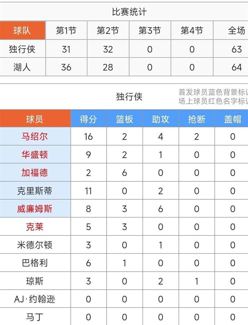 湖人队一度凭借第二阵容的出色发挥,将领先优势扩大到了13分。看起来比赛似乎要失去悬念。但NBA赛场永远充满变数。就在上半场最后三分钟,湖人的进攻突然断电,全队屡投不中。独行侠抓住了这个机会,老将克莱·汤普森命中一记追身三分,吹响了反击的号角。独行侠的年轻球员们趁势打出一波12比0的进攻狂潮。当上半场结束的电子蜂鸣器响起时,比分牌上显示着64比63,湖人队仅仅带着1分的微弱优势进入中场休息。詹姆斯半场的数据已经来到了18分、4个篮板和8次助攻,距离三双仅一步之遥。独行侠的马克斯·克里斯蒂面对旧主毫不手软,半场也拿到了11分。